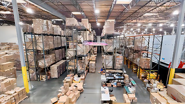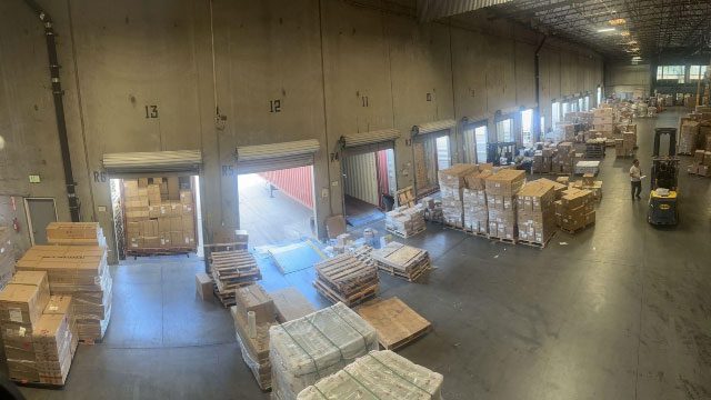 靠近洛杉磯港、長(zhǎng)灘港,總占地面積8萬平方英尺,13個(gè)卸貨碼頭,日處理訂單5000+