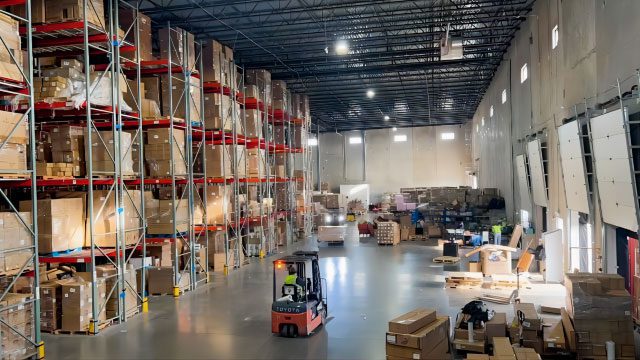 安大略二倉(cāng)臨近一倉(cāng),靠近安大略機(jī)場(chǎng) ,距離全美最大的港口長(zhǎng)灘港以及安大略湖港半小時(shí)車程 ,總占地面積15萬平方英尺 ,30+個(gè)卸貨口 , 日處理訂單最高達(dá)20000件。
